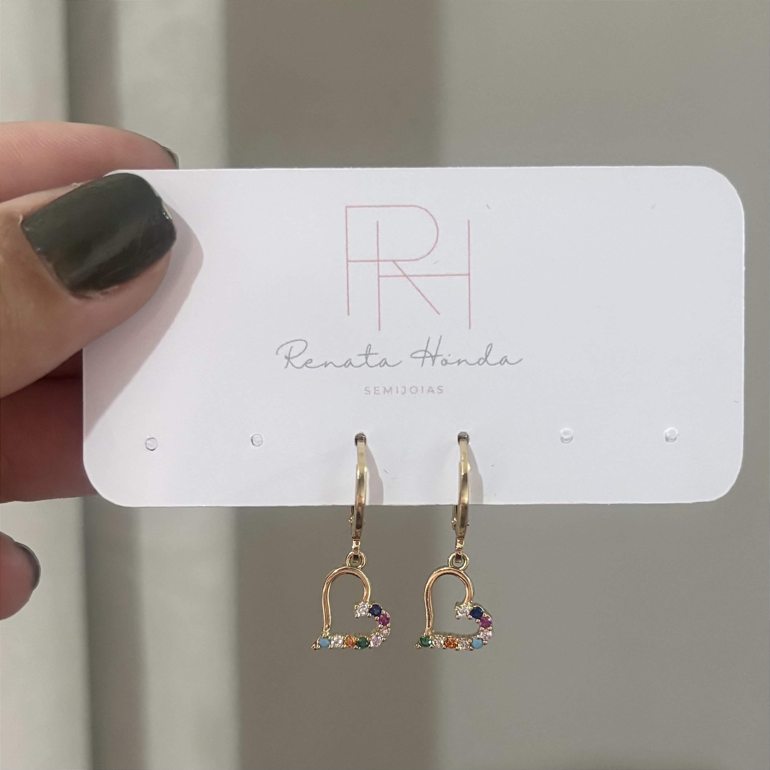 Brinco argola coração colorido