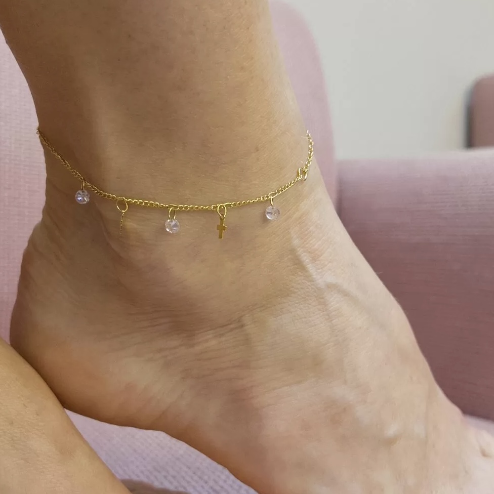 Tornozeleira cruz cristal